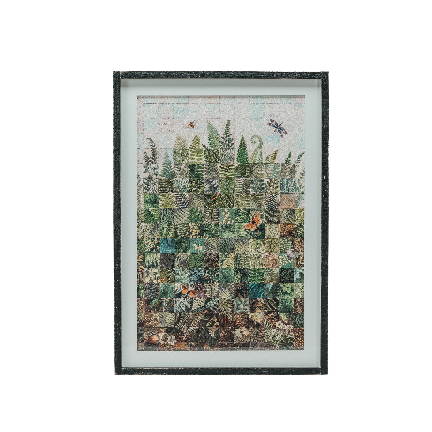 This Wood Framed Glass Wall Décor with Fern Fronds Print is a celebration of the natural world. The multi-colored ferns are rendered in exquisite detail, set against a backdrop that highlights their delicate forms. The rectangular frame is crafted from wood, complementing the organic subject matter, while the glass protects and enhances the vibrancy of the print. It measures 25 inches W x 35.5 inches H, offering an expansive view of the fern print that becomes a statement piece in any space. Whether hung in a garden-themed room or as part of a minimalist Scandinavian design, this piece adds a touch of elegance and a breath of fresh air to the decor.