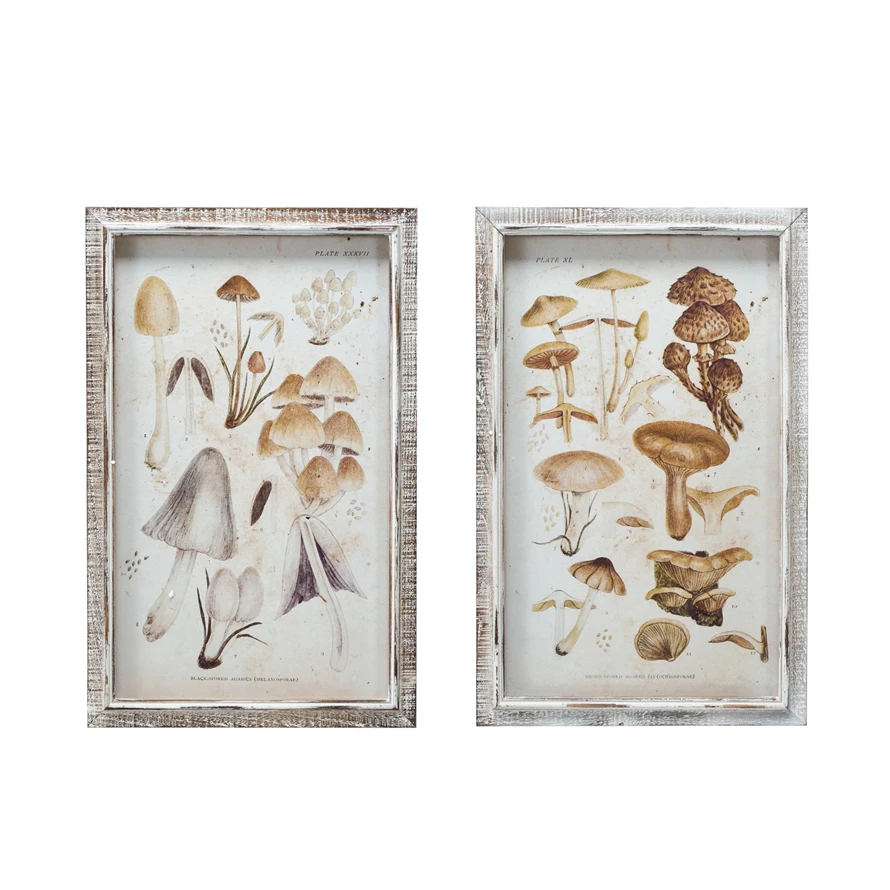 Wood Framed Glass Wall Décor w/ Mushrooms Print, 2 Styles
