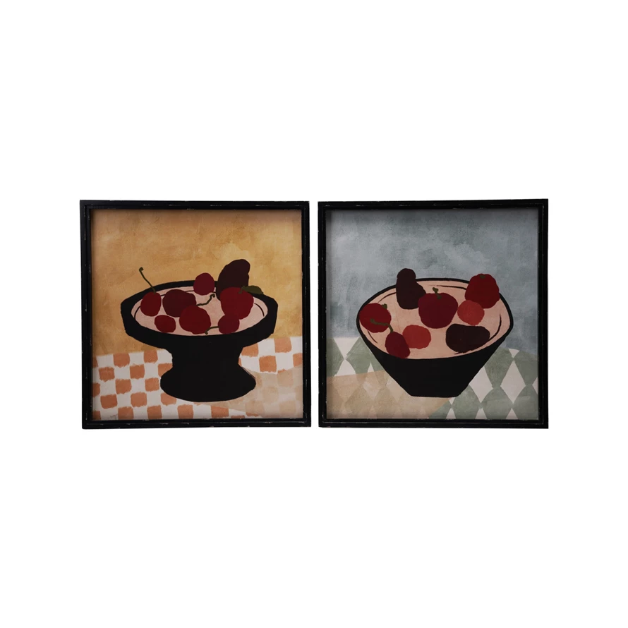 Catalog Name: 19-1/2" Square Wood Framed Glass Wall Décor w/ Abstract Fruit Bowl Image, Multi Color, 2 Styles, Truck Ship