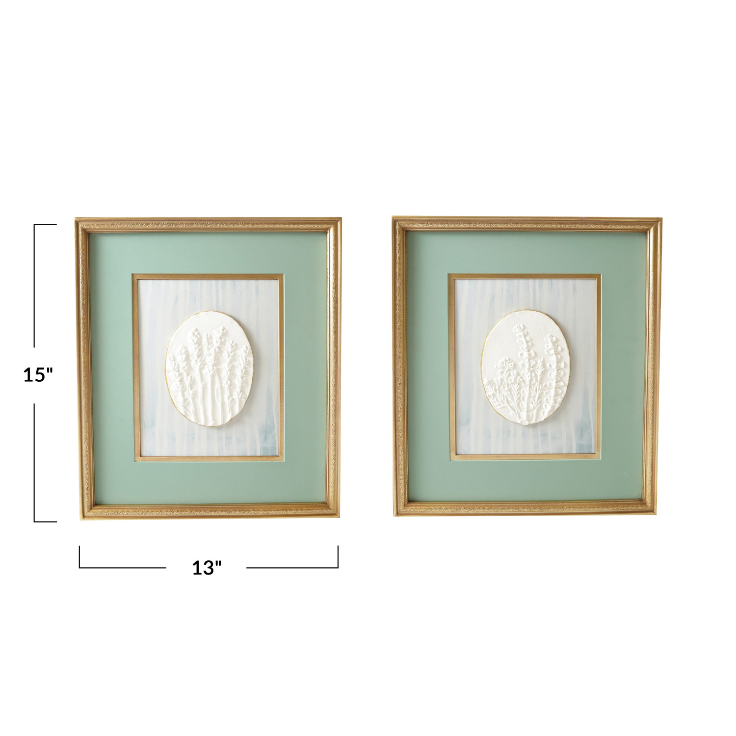 Wood Framed Wall Décor w/ Embossed Resin Botanicals, Gold Finish & Multi Color, 2 Styles ©