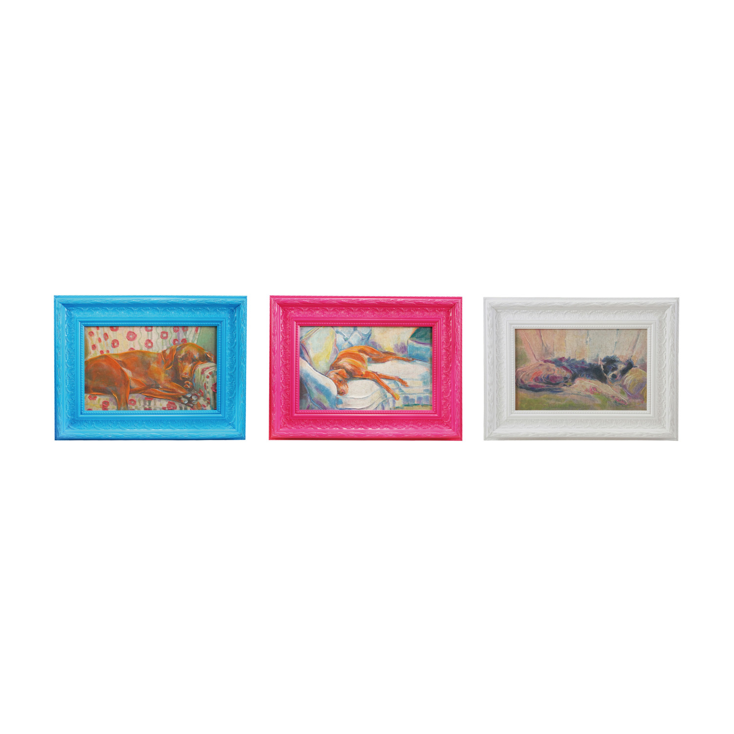 Catalog Name: 18"W x 24"H Moulded Composite Framed Wall Décor w/ Sleeping Dog Image, Multi Color, 3 Styles, Truck Ship