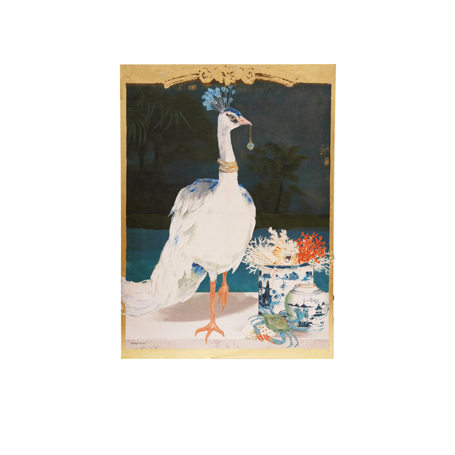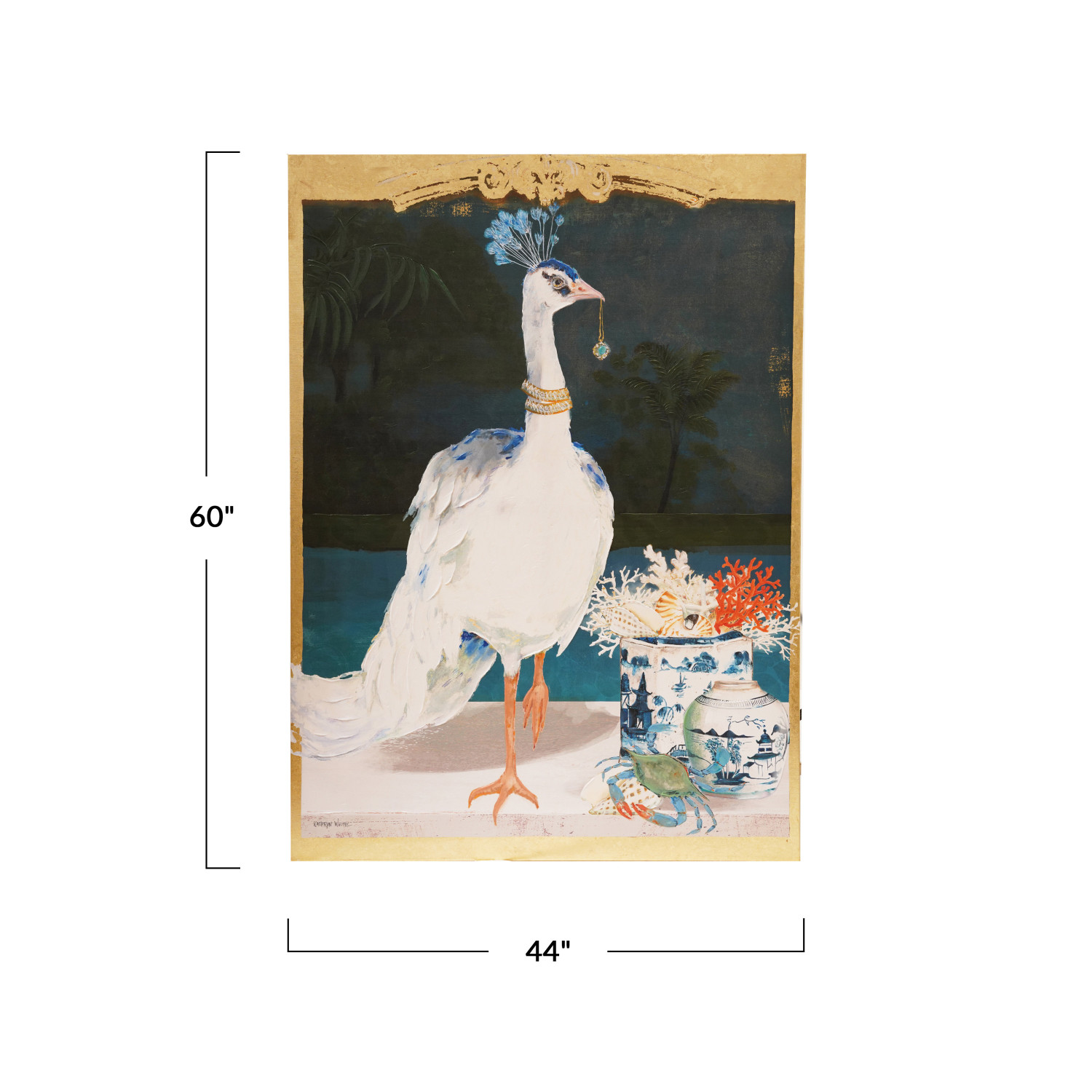Catalog Name: 44"W x 60"H Wood Framed Canvas Wall Décor w/ Bird & Urn Image & Gold Foil, Antique Gold Finish & Multi Color, Truck Ship