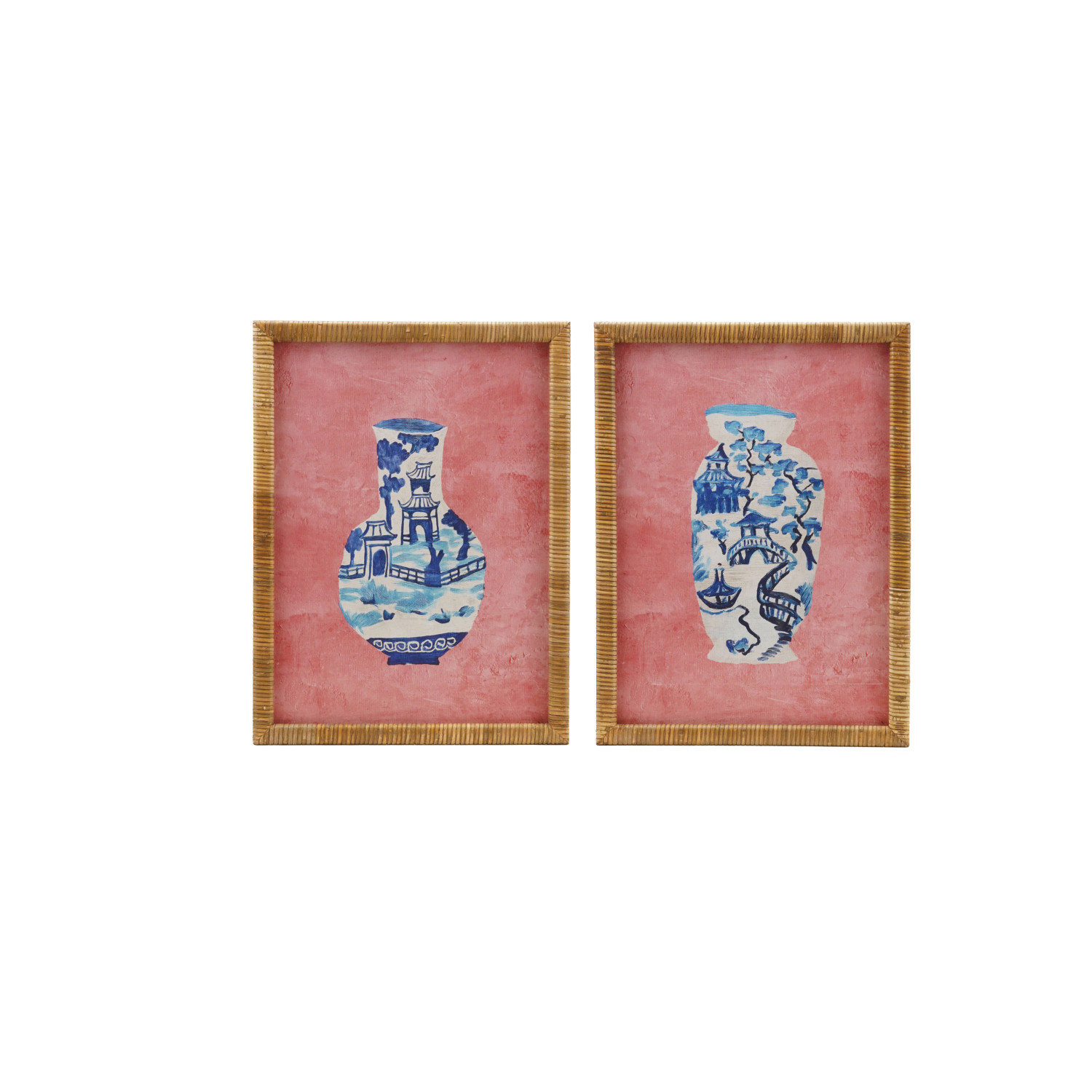Rattan Wrapped Wood Framed Glass Wall Decor with Vase, 2 Styles