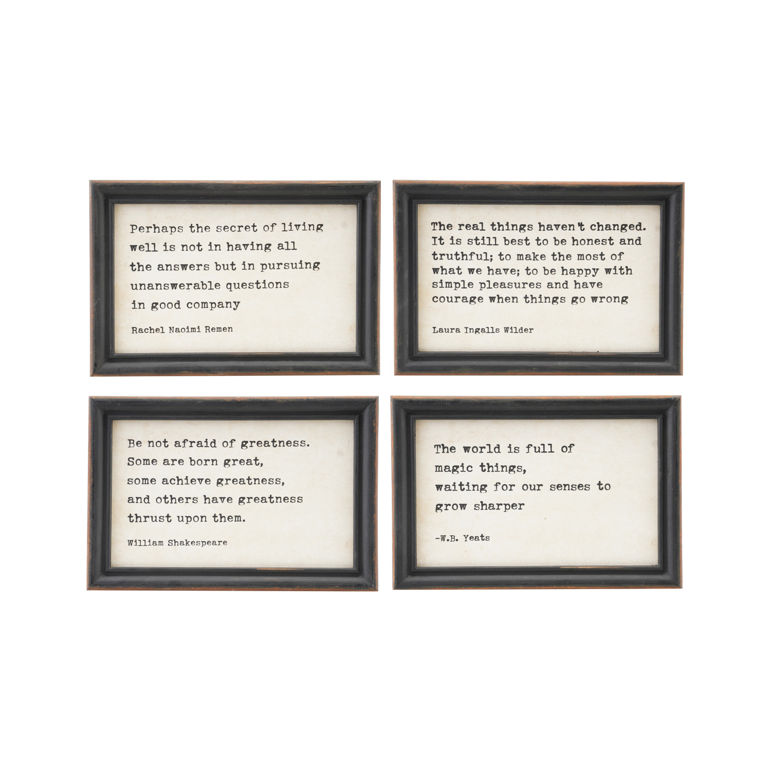 Wood Framed Wall Decor with Saying, Black & White, 4 Styles