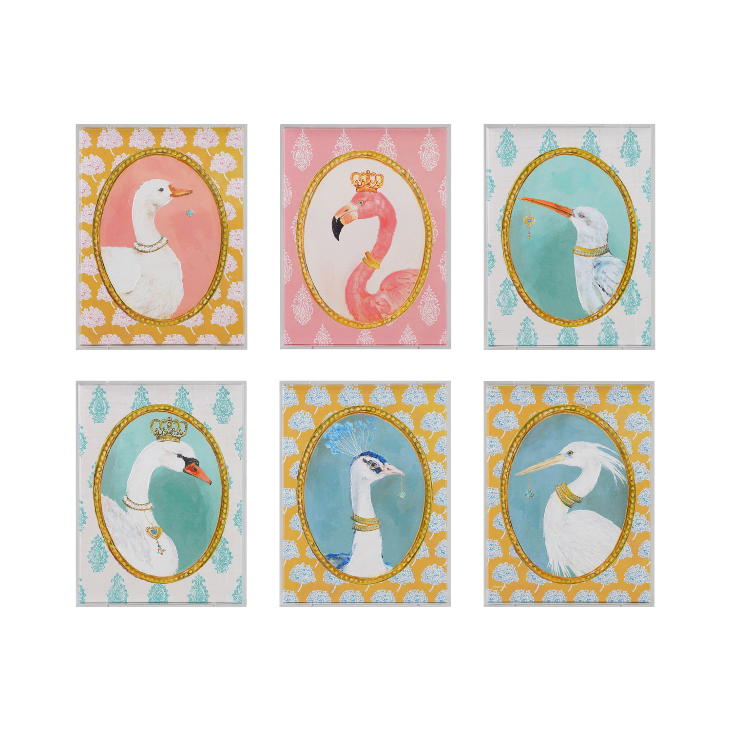 Catalog Name: 12"W x 16"H Acrylic Box Framed Canvas Wall Décor w/ Hand-Painted Pattern, Bird & Jewel, Multi Color, 6 Styles