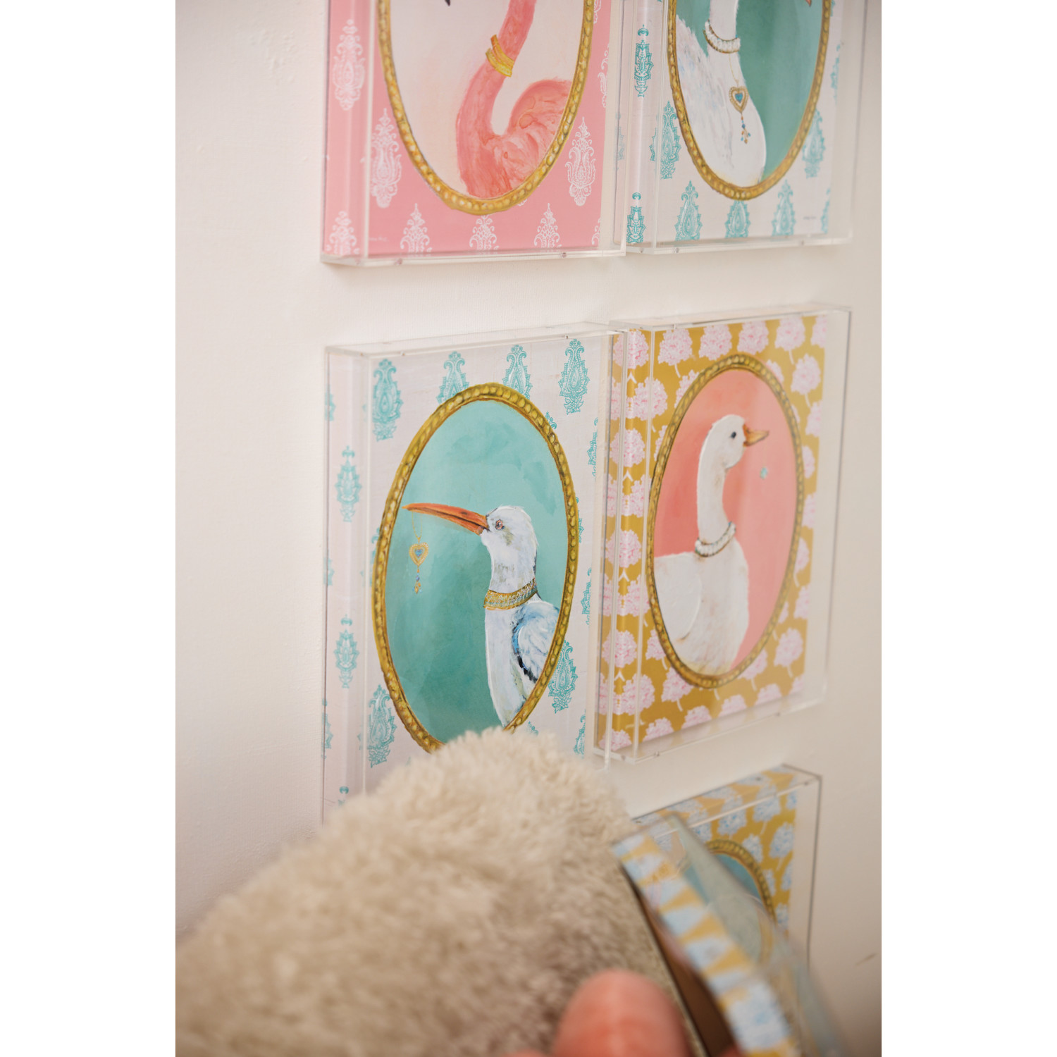 Acrylic Box Framed Canvas Wall Decor with Hand-Painted Pattern, Bird & Jewel, 6 Styles