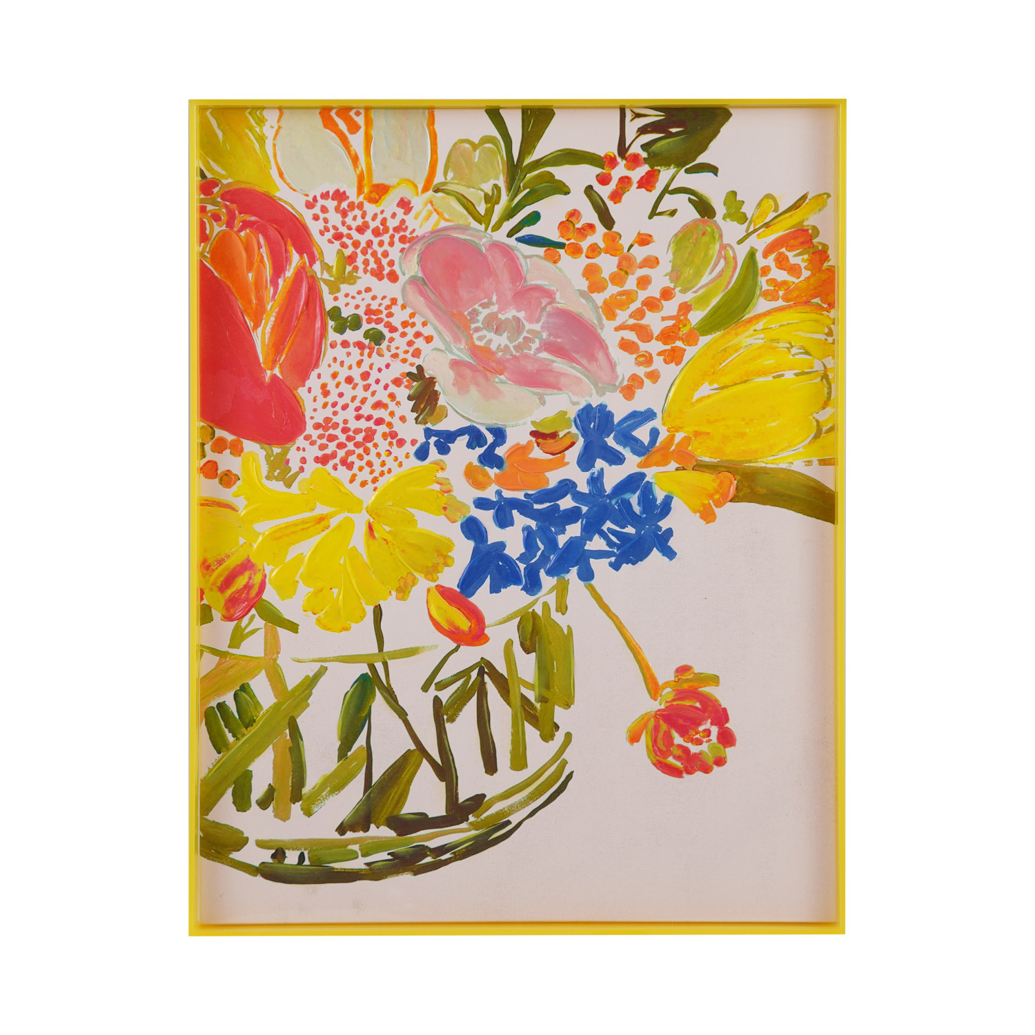 Catalog Name: 22"W x 28"H Yellow Acrylic Box Framed Canvas Wall Décor w/ Hand-Painted Flowers in Vase, Multi Color, Truck Ship