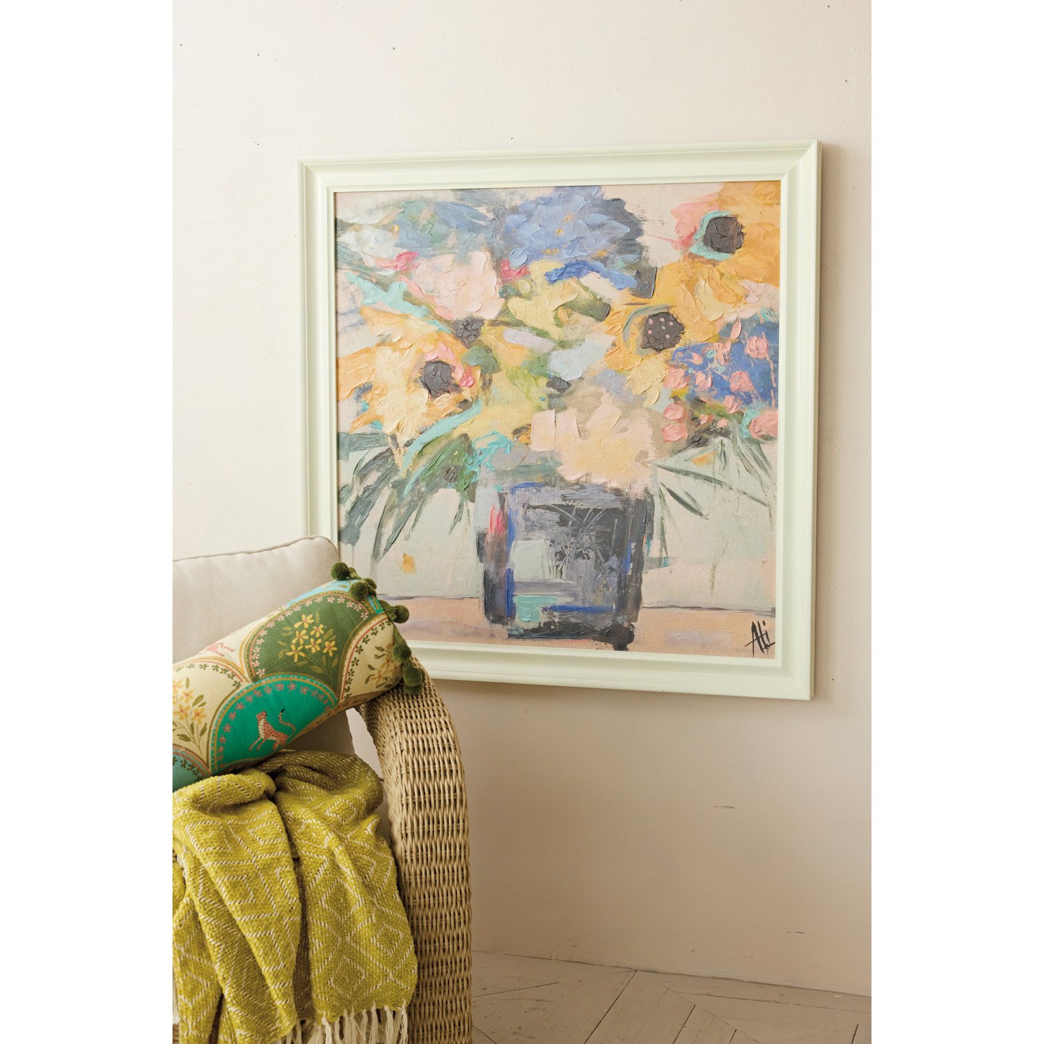 Catalog Name: 42" Square Wood Framed Canvas Wall Décor w/ Hand-Painted Flowers in Vase, Multi Color