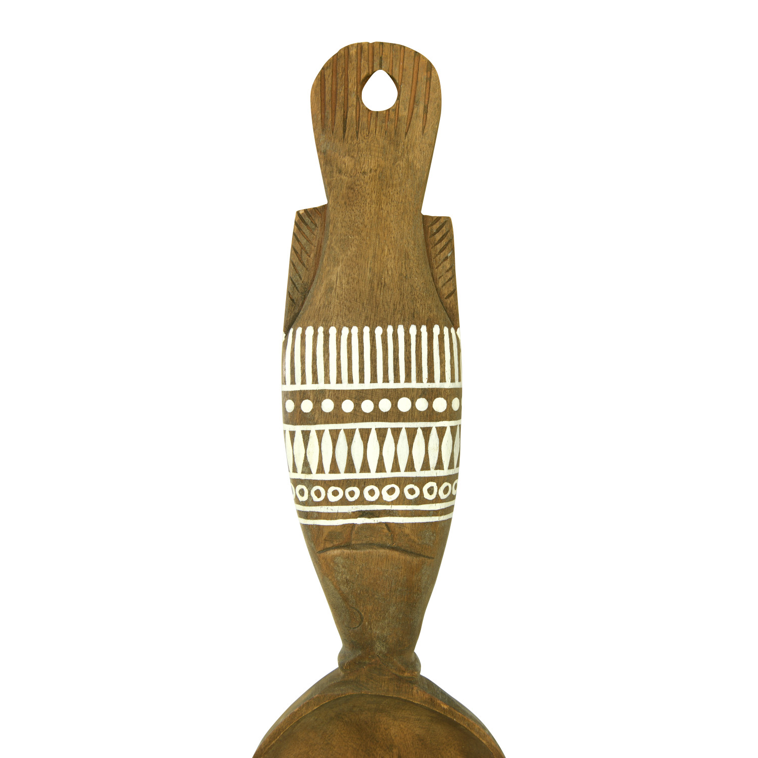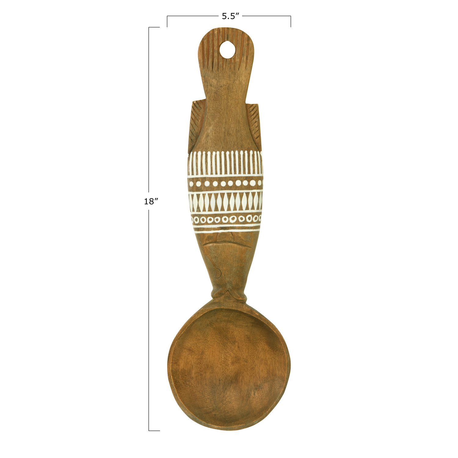 Catalog Name: 5-1/2"W x 18"H Decorative Mango Wood Fish Shaped Wall Hanging Spoon w/ Hand-Painted White Pattern, Natural