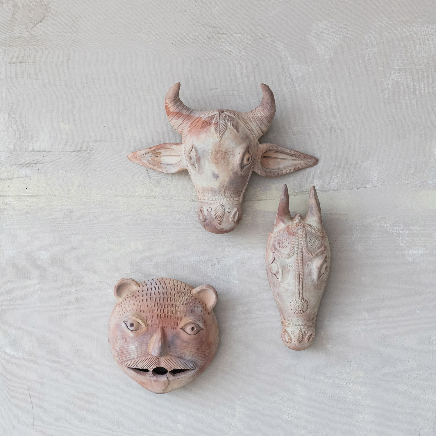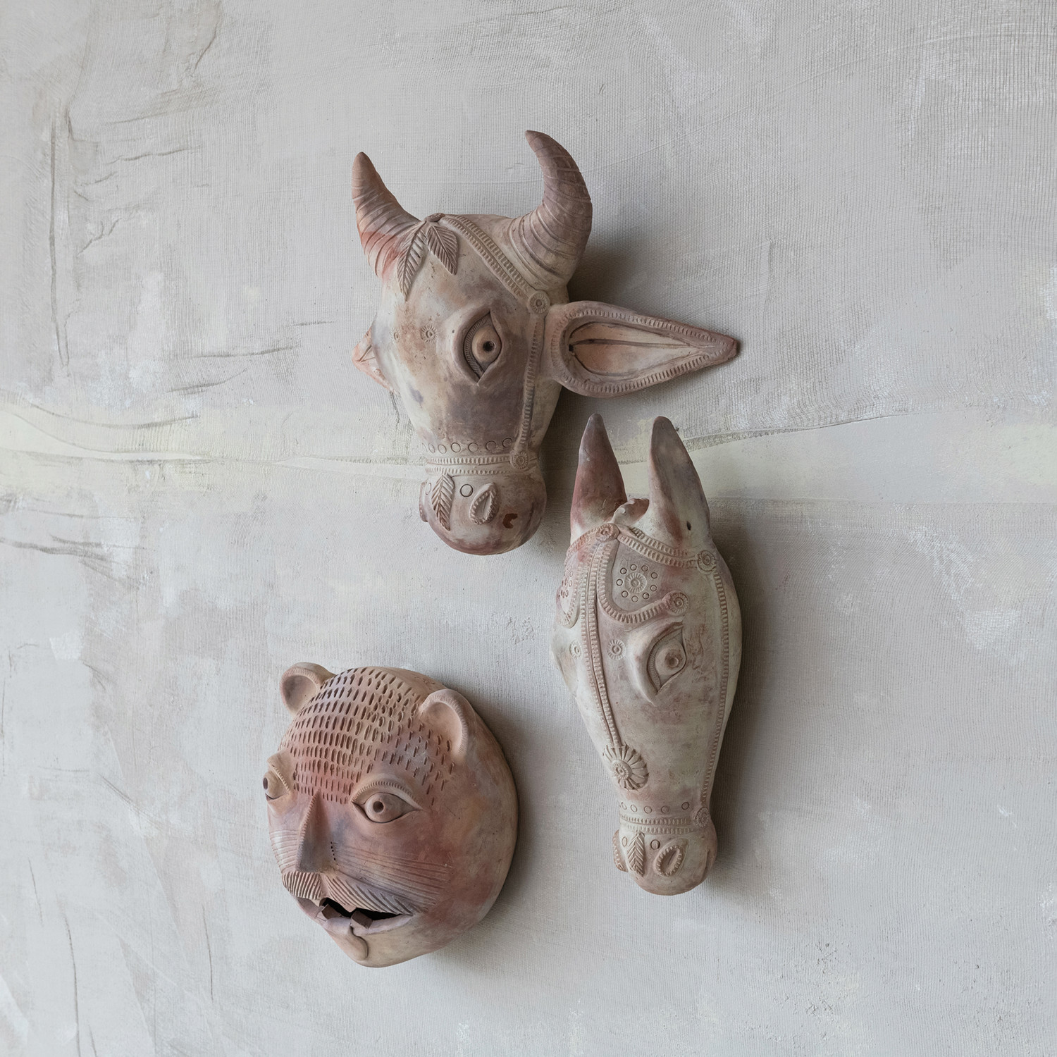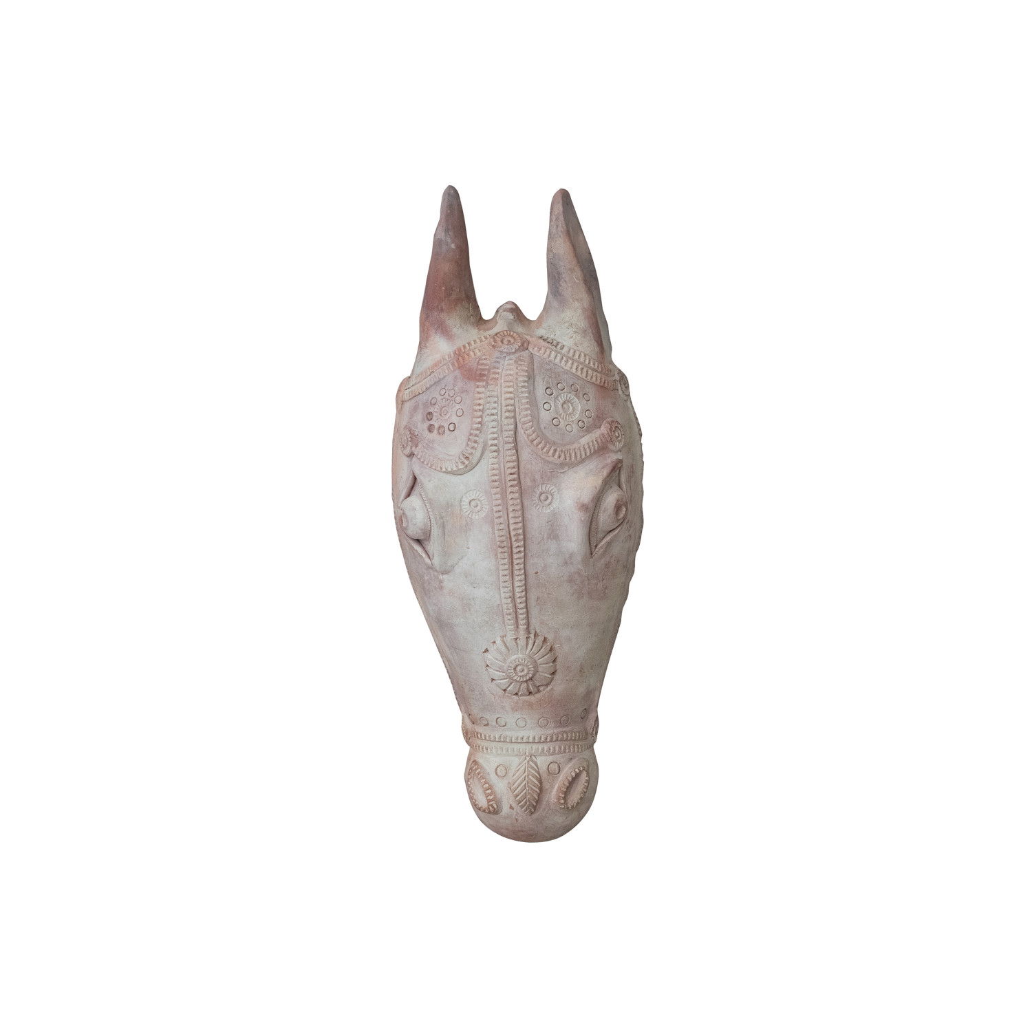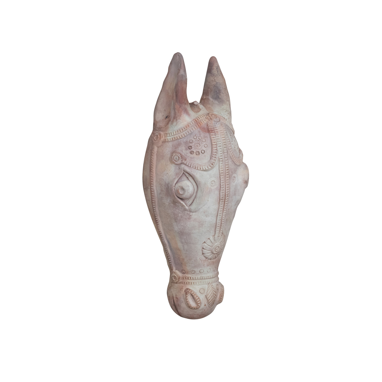 Handmade Terra-cotta Horse Head Shaped Wall Décor, Whitewashed