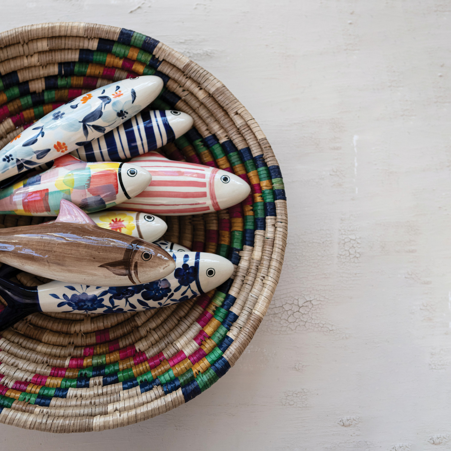Hand-Painted Stoneware Fish Wall Décor, 4 Styles (Hangs or Sits)