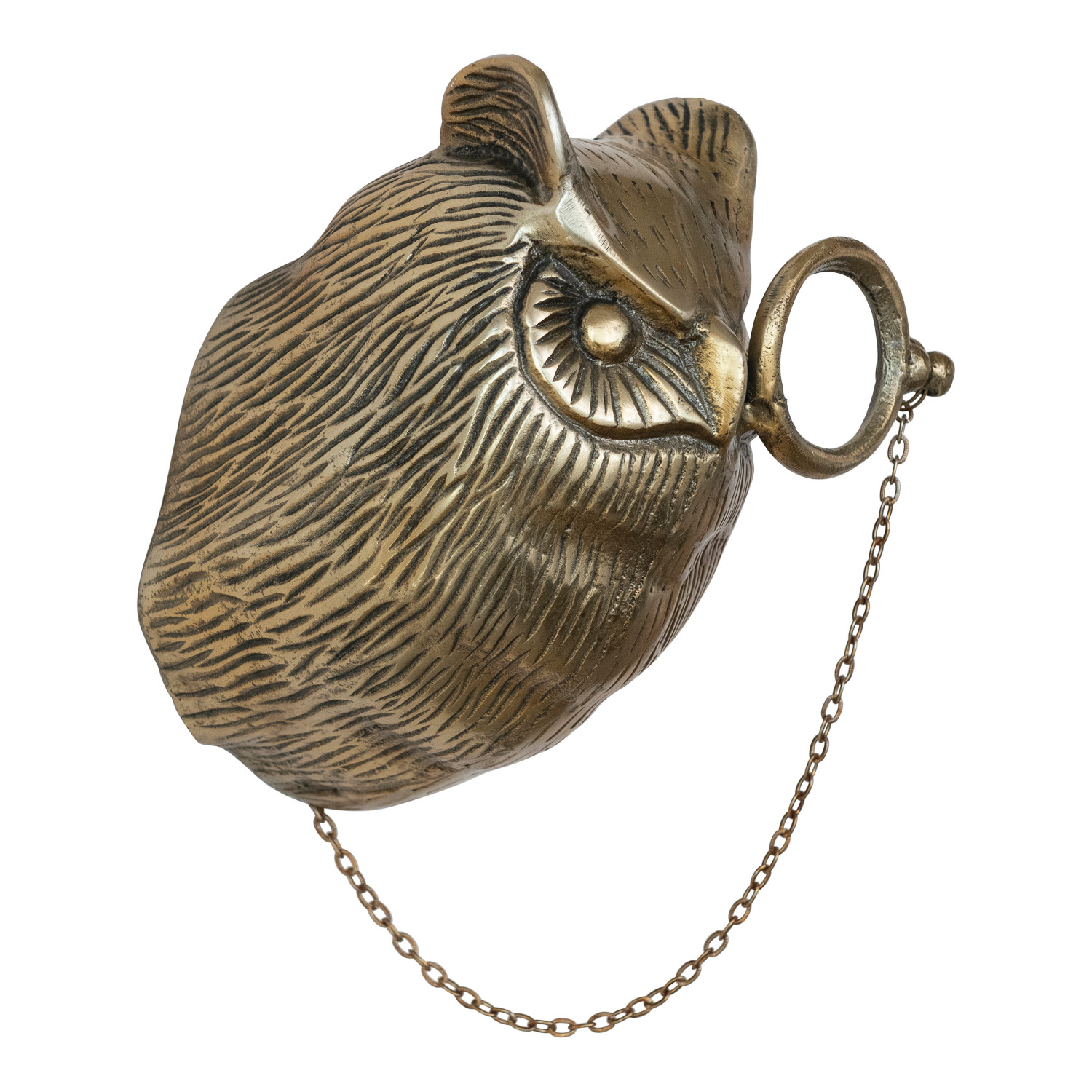 Cast Aluminum Owl Head with Monocle Wall Decor, Antique Brass Finish