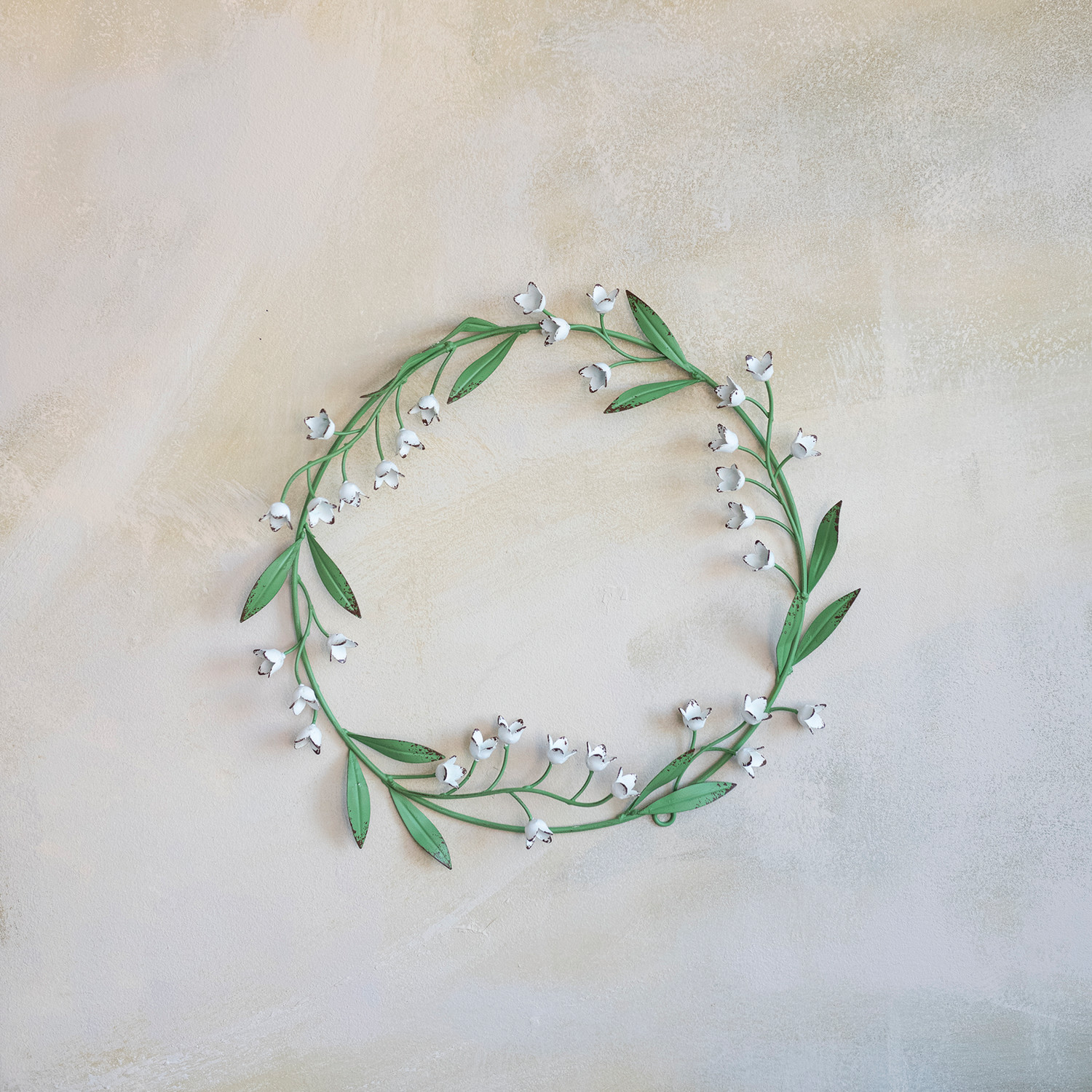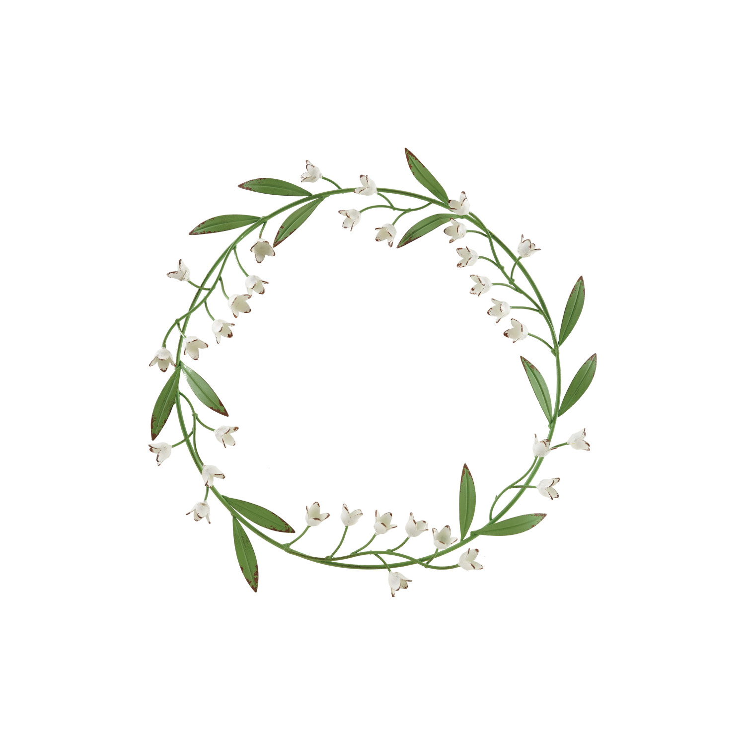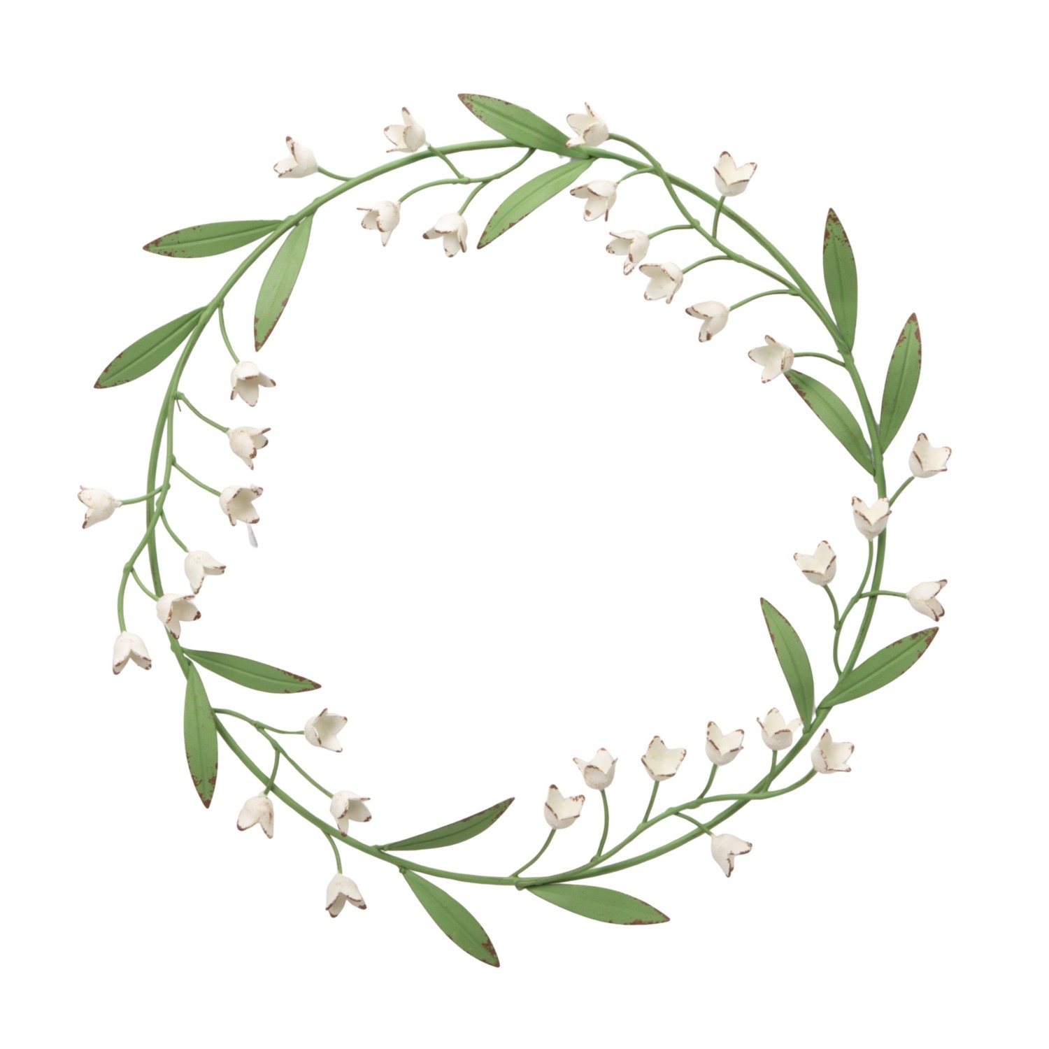 Catalog Name: 16" Round Metal Vintage Reproduction Toleware Lily of the Valley Wreath, Green & White