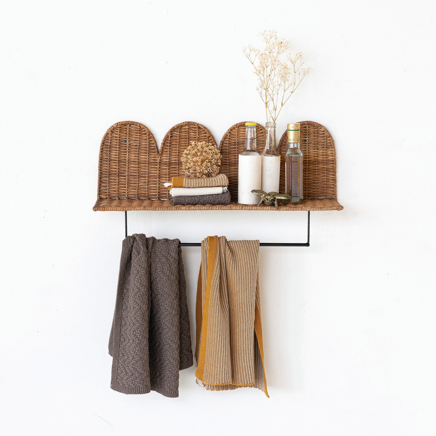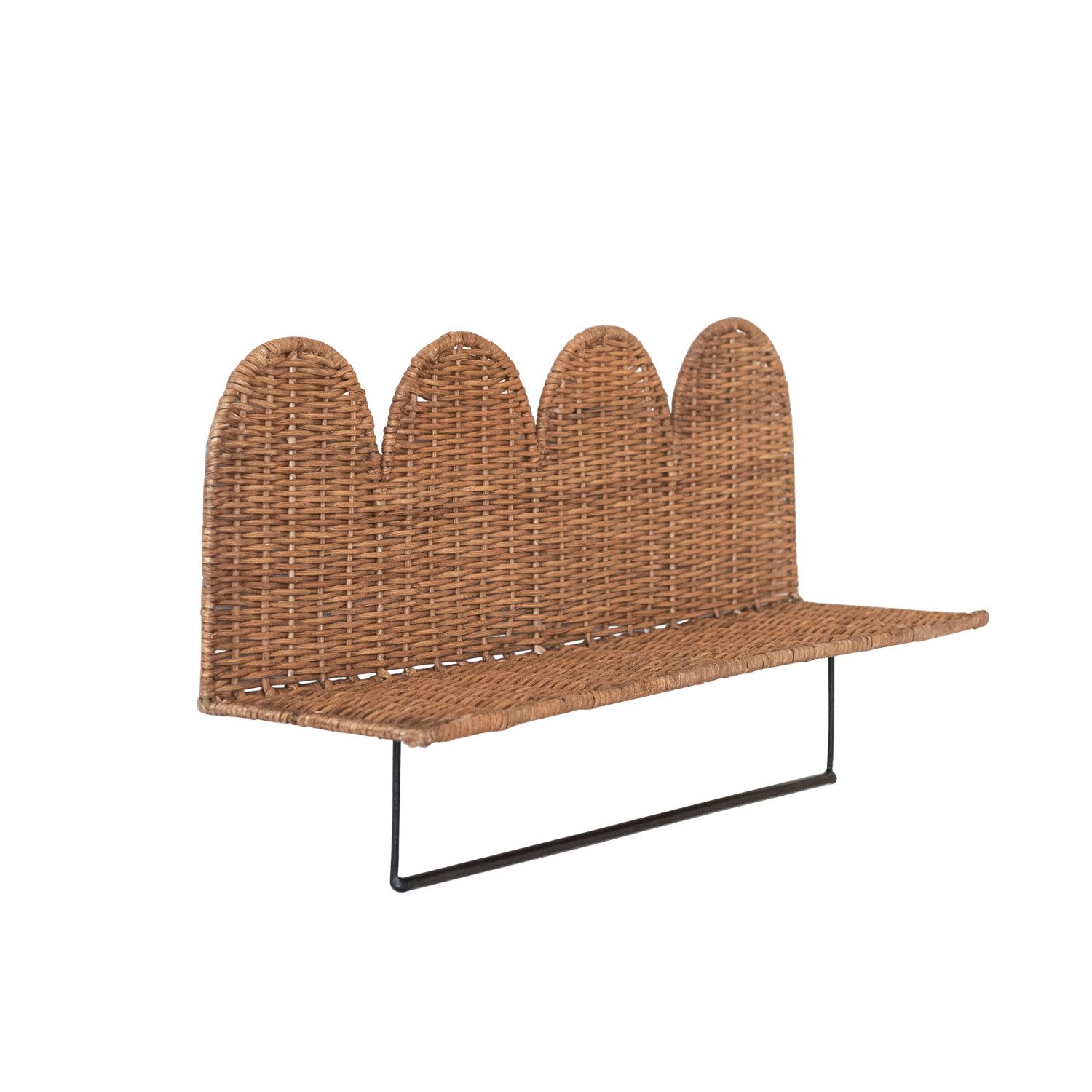 Rattan Wicker Wall Shelf w/ Scalloped Edge & Metal Rod, Natural