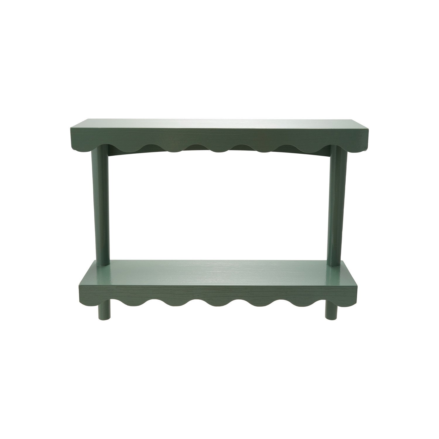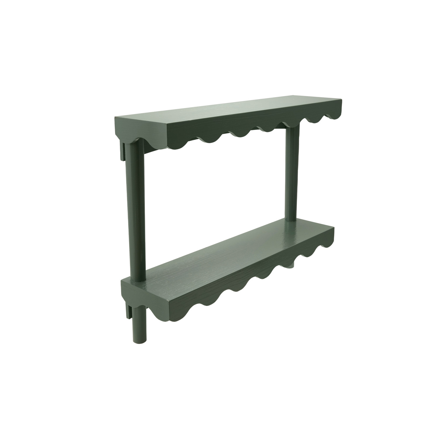 Wood Scalloped Wall Shelf with 2 Shelves, Eucalyptus Color, KD