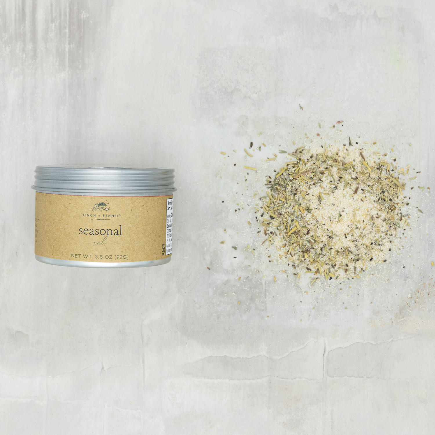 Our Seasonal Rub is the perfect blend for your holiday roast. Rosemary, thyme, cracked black pepper, sea salt, savory onion, and garlic aromatics make up the robust selection of herbs and spices. Item is certified Kosher.