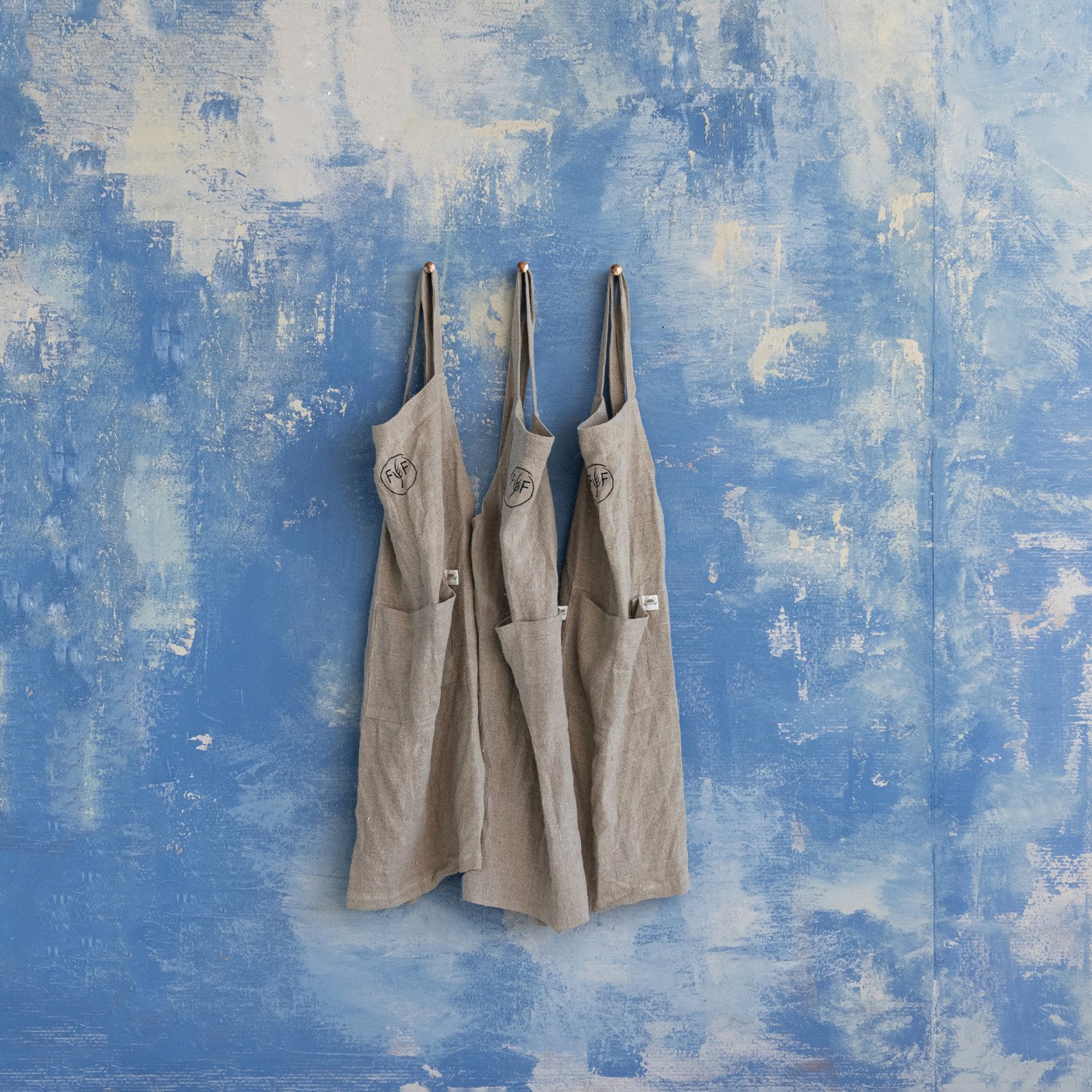 Woven Linen & Cotton Apron with Pocket & Embroidered Logo