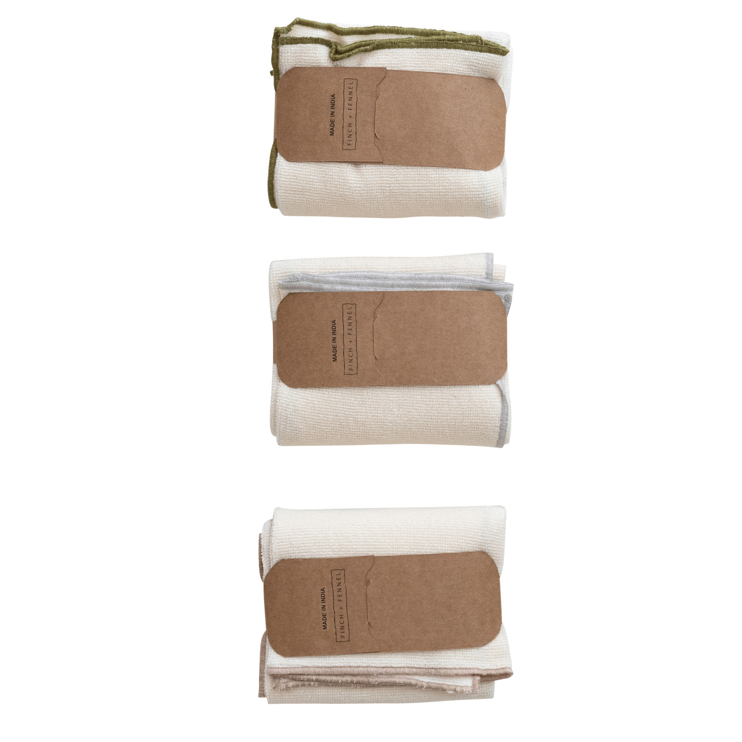 Cotton Terry Cloth Tea Towel w/ Contrast Stitched Edge & "Finch + Fennel" Logo, 3 Colors