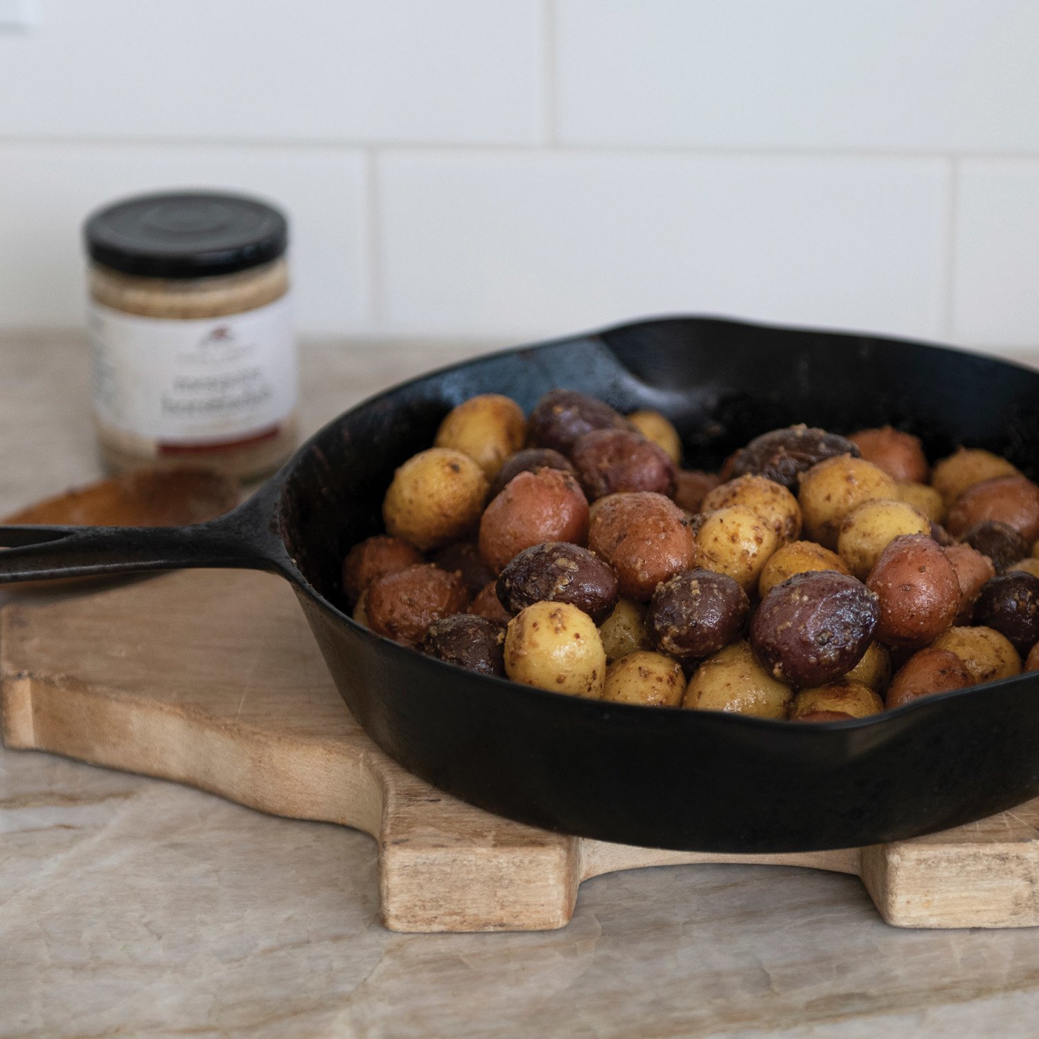 Our Mesquite Horseradish Mustard is a wonderful combination of grainy stone-ground mustard, smoky mesquite flavor, and a hint of white wine.