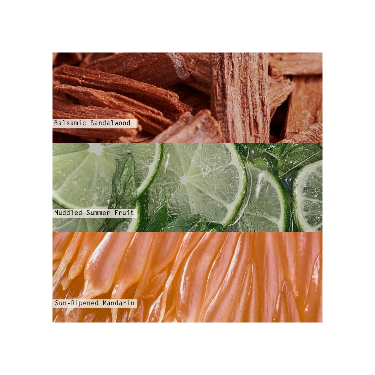 This scent is grounded in balsamic sandalwood, with a heart of muddled summer fruit, and kissed with sun-ripened mandarin. With a modern shape and grounding white ceramic collar, this reed diffuser is refillable with our 6oz alcohol-free diffuser refill. Diffuser is refillable by unscrewing the ceramic collar, then pouring new oil into the vessel. Replace the collar, and arrange the fresh reeds.