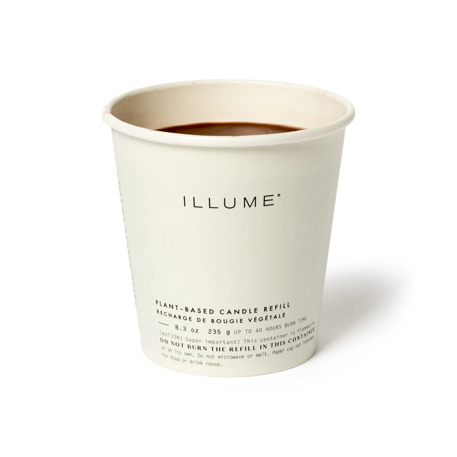 This scent is grounded in sheer cashmere musk with a heart of bright tobacco leaf and kissed with sunny sweet orange. Our boxed glass candle refill has a clean burning, plant-based wax blend and is sustainably packaged in a compostable paper cup. Boxed glass candle is refillable by pushing the bottom of the refill container upward and pulling the wax refill out by its wick. Place the refill in a clean boxed glass candle vessel. TIP: Place the boxed glass candle refill in the refrigerator for fifteen minutes beforehand for easiest removal; Burn time up to 40 hours in approved vessel.