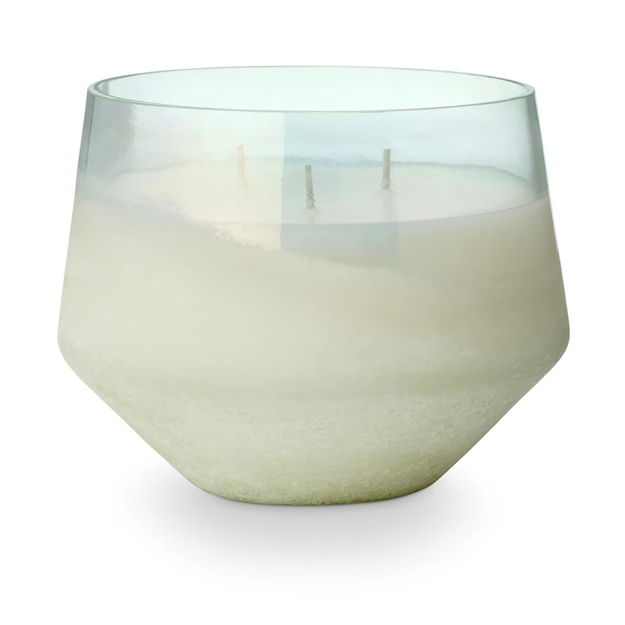 Beautifully Done Fresh Sea Sale is grounded in salty sea spray, with a heart of poetic jasmine, and kissed with a gentle breeze. With a salt-kissed finish, the baltic glass is organic and soft in nature, providing a rich glow when lit.