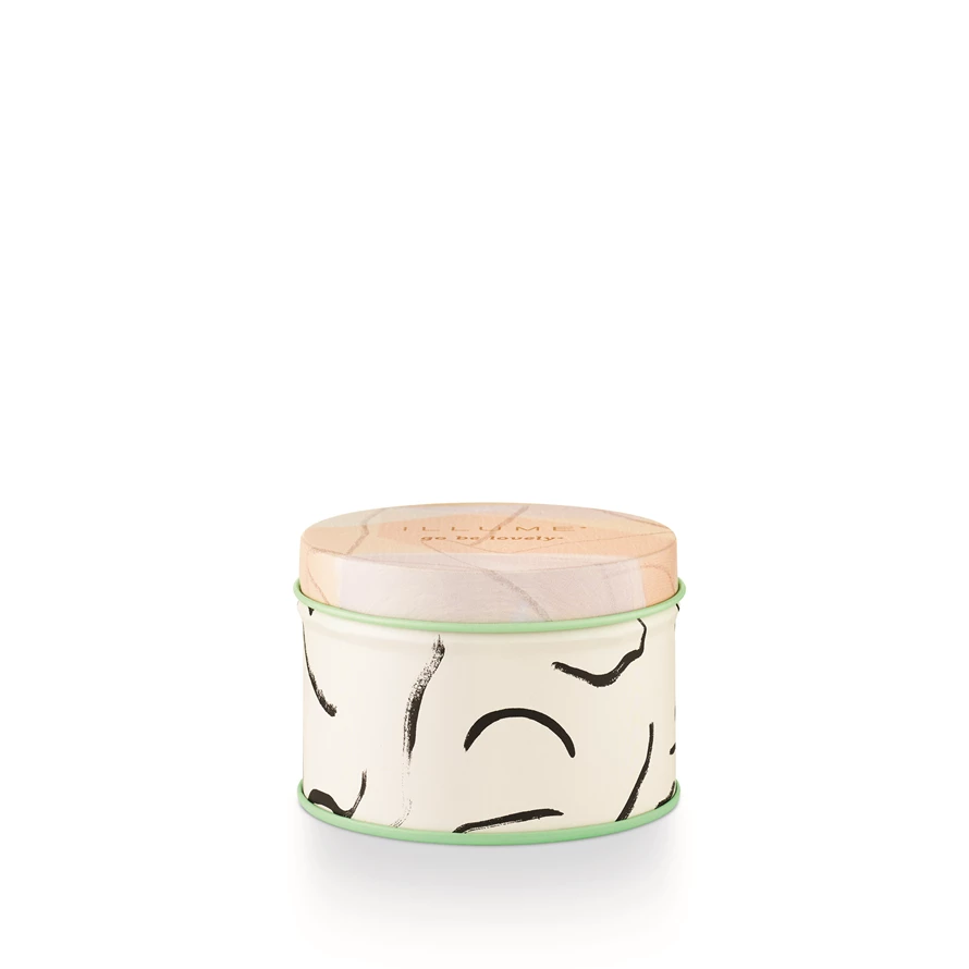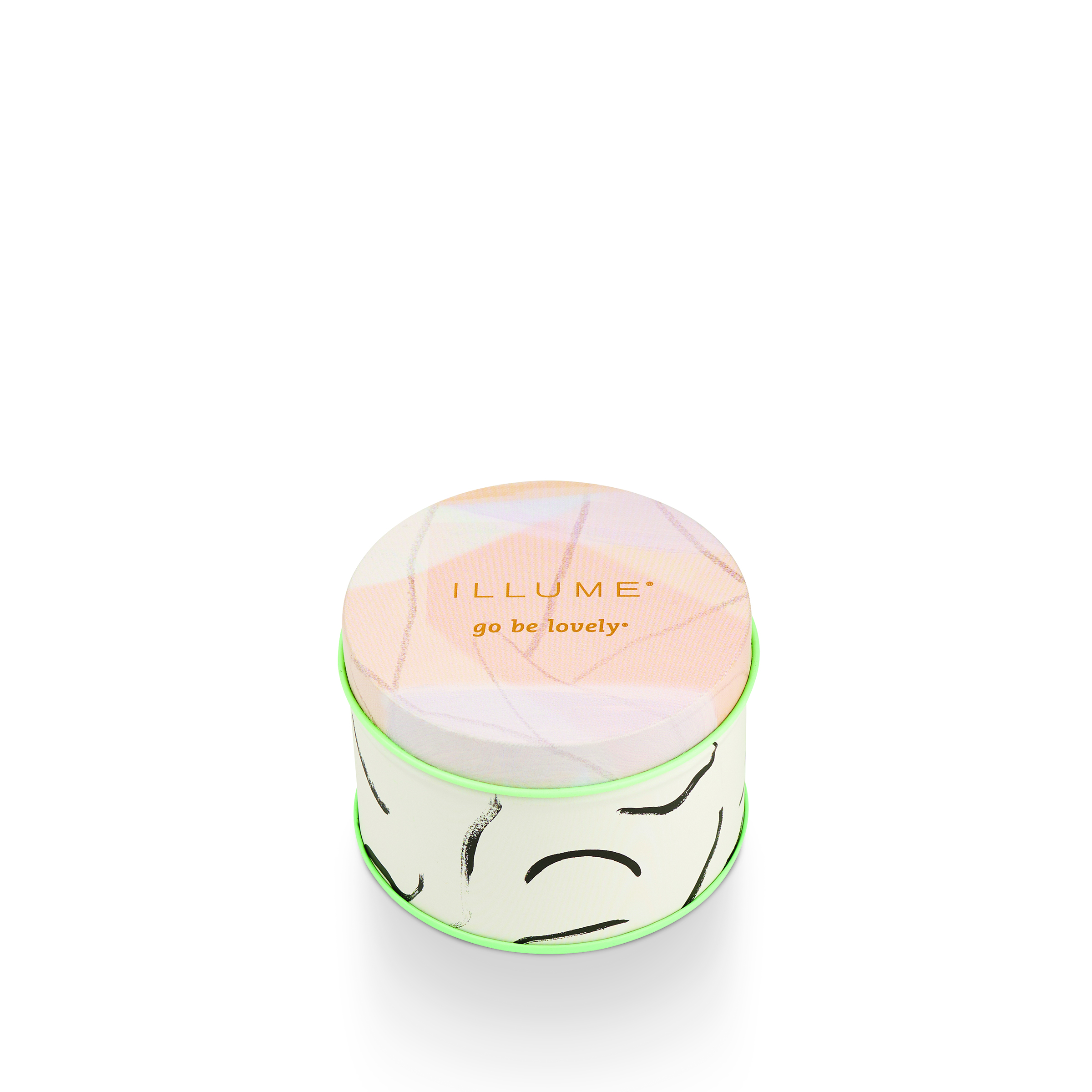 Fragrance Description: Island pineapple, freshly-sliced mango, lush papaya, and coconut milk are infused with sugarcane and Tahitian vanilla. Burn Time: 20 Hours. 4.2 oz. Lidded Tin Candle. Go Be Lovely Collection.