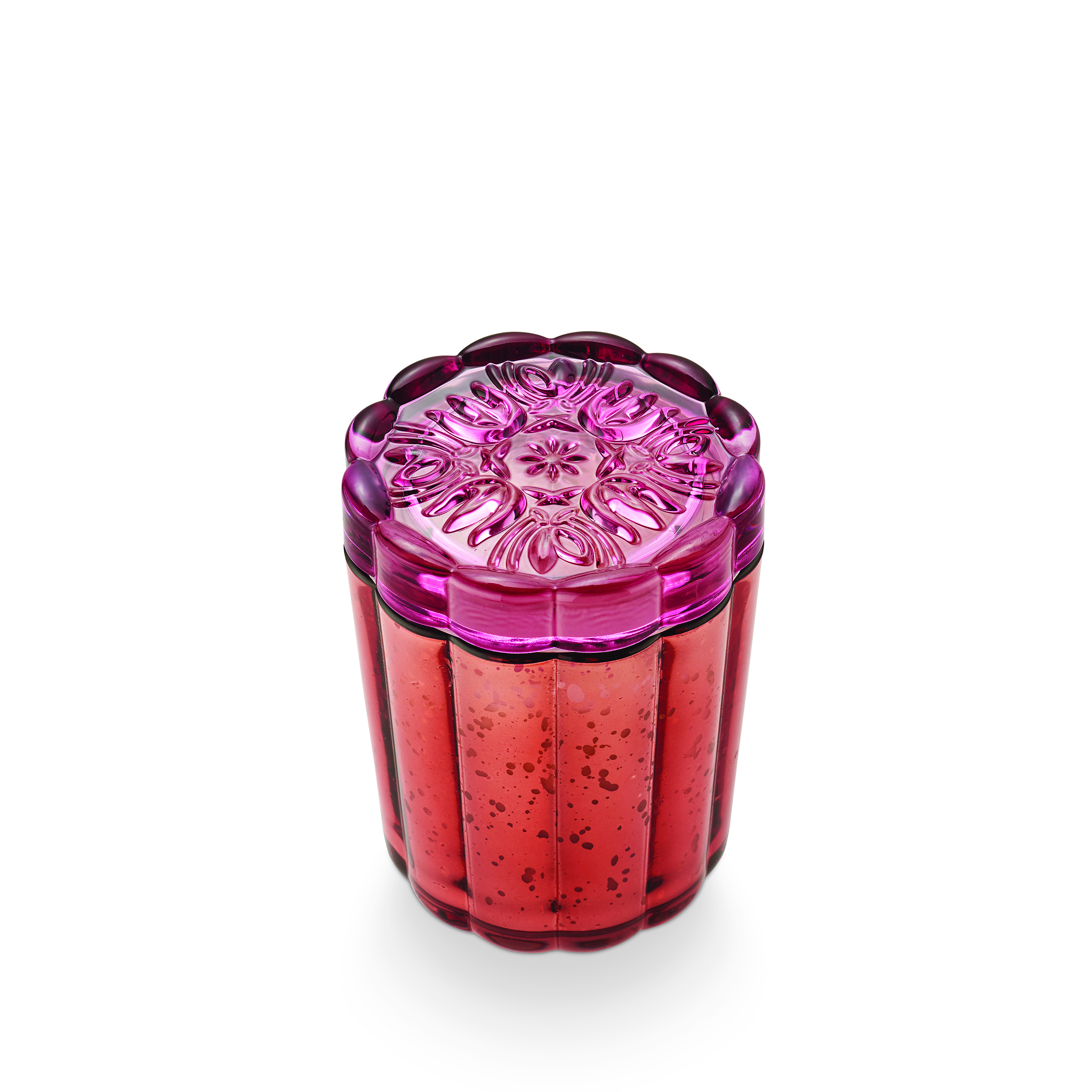 Fragrance Description: A blissed out romance of tropical fruit, pink pepper, and vivacious rose. Burn Time: 64 Hours. 11.6 oz. Glass Candle. Go Be Lovely Collection.
