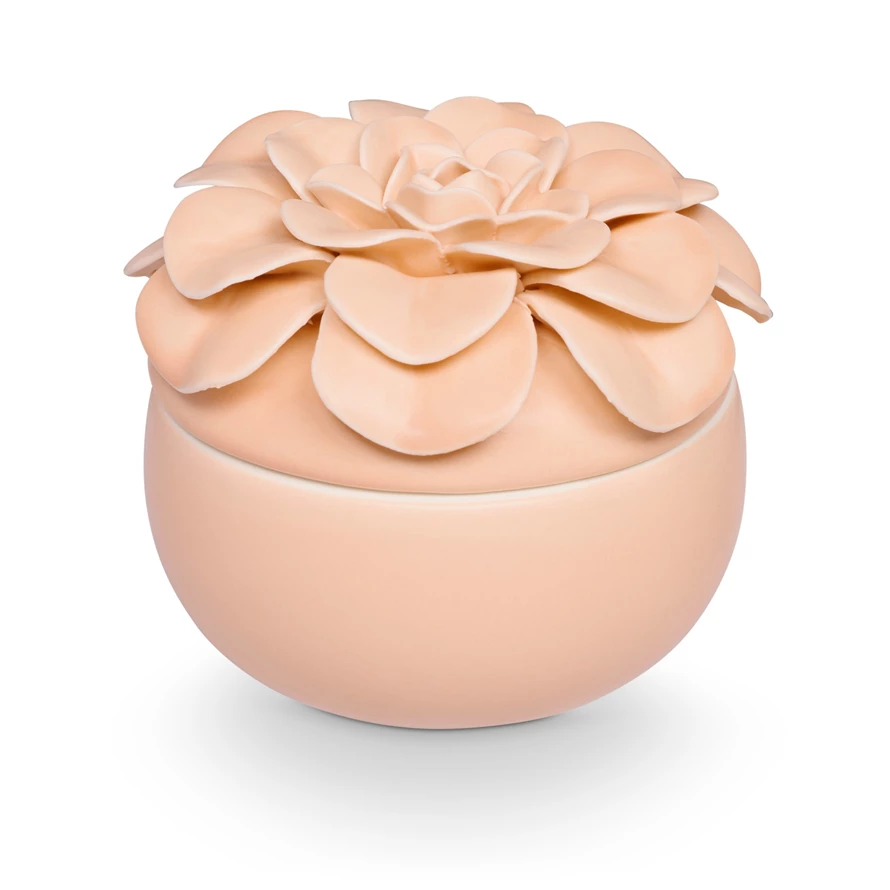 Catalog Name: Blood Orange Dahlia Ceramic Flower Candle