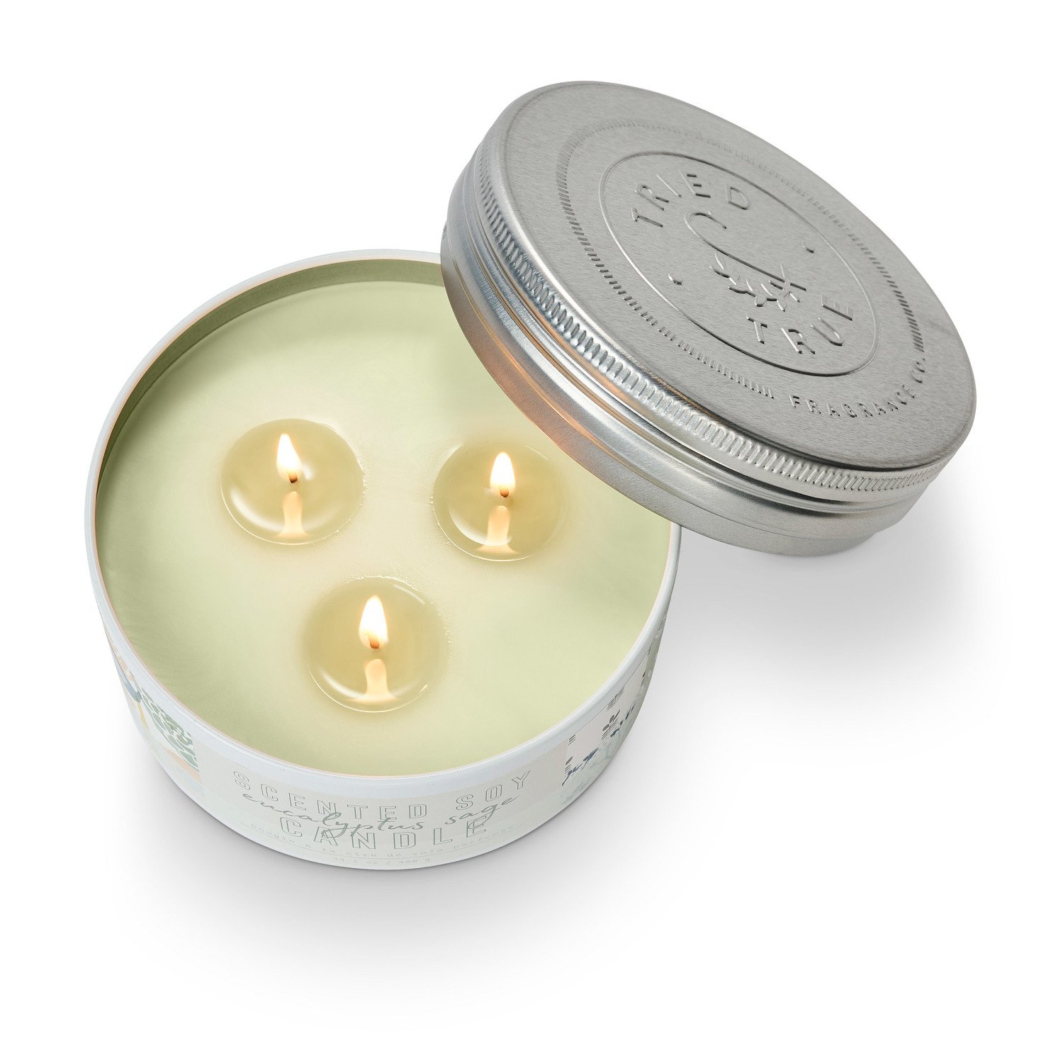 Fresh and familiar for every room in the house. Perfect for any room, the Large Tin with colored wax and a decorative wrap label makes a perfect addition to seasonal home decor. Design details like hand illustration and an embossed lid add quality and style. This scent features notes of silver sage, rosemary, and clove bud. Plant-based soy blend candle poured in the USA. Thoughtfully designed from wax to wick, our candles add warmth and ambiance to any interior design scheme. Burns up to 30 hours; 2 wicks.