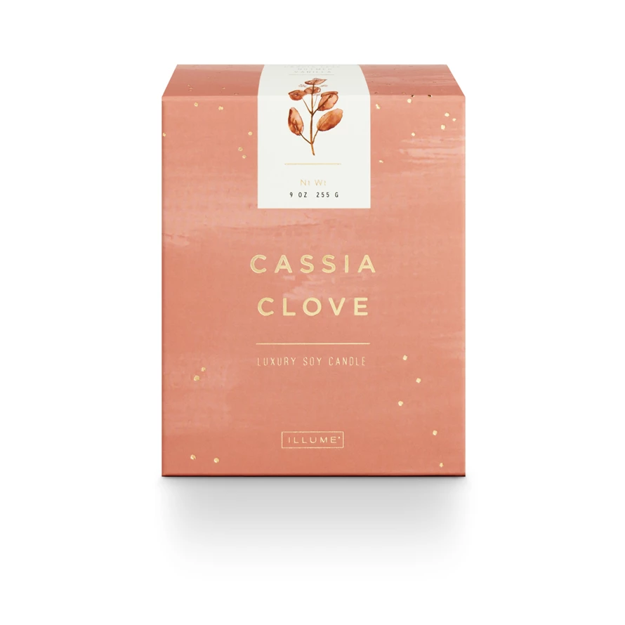 Fragrance Description: Aromatic cassia leaf and warm spices mingle with rich vanilla and glowing copper woods, evoking the classic comforts of the season. Soy blend candle poured in the USA. Up to 45 hours of burn time. Cruelty-free.