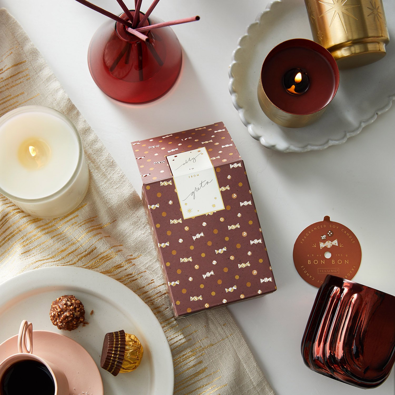 Catalog Name: Fa La Lovely Bon Bon Pressed Glass Candle
