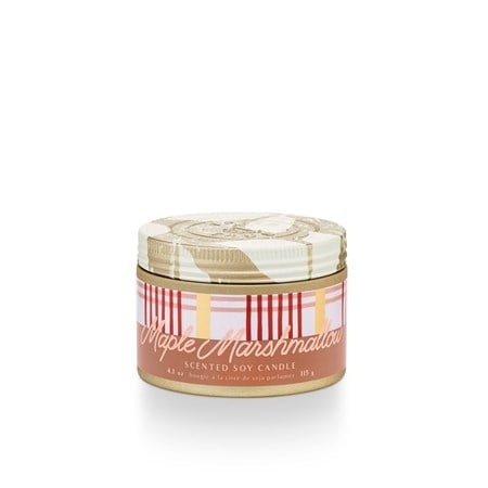 Notes of peppermint, vanilla, and toasted sugar. Soy blend candle poured in the USA; Burn time up to 20 hours.