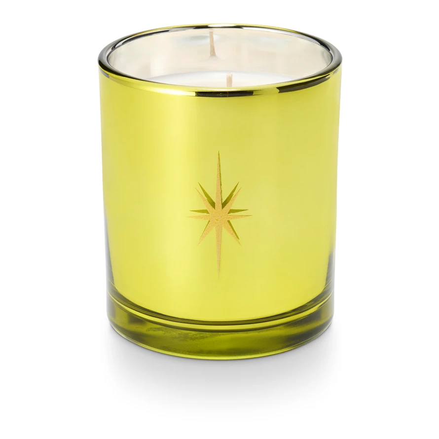 A timeless color blocked glass with a gilded gold star front and center, and a silver metallic interior for a touch of holiday shine.