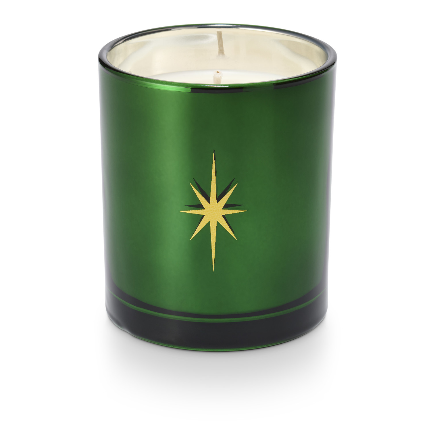 A timeless color blocked glass with a gilded gold star front and center, and a silver metallic interior for a touch of holiday shine.